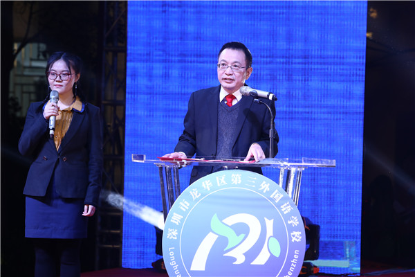 在晚會正式開始之前,聶細(xì)剛校長在致辭中提到,深圳市龍華區(qū)第三外國語學(xué)校是一所致力于植根中國、面向世界的外國語品牌學(xué)校,培養(yǎng)具有中國精神、世界情懷的國際公民。同時,在借力于孔子學(xué)院、立足打造書香校園、弘揚中華民族優(yōu)秀傳統(tǒng)文化基礎(chǔ)上,借力于北京外國語大學(xué)、北京師范大學(xué),在全力推進(jìn)英語雙師云課堂。同時,開設(shè)了俄語、法語、韓語等小語種選修課,未來還將開設(shè)日語、德語、西班牙語等小語種,凸顯外國語特色品牌。學(xué)校成為全國美育名校聯(lián)盟學(xué)校,北京師范大學(xué)項目實驗學(xué)校,北京外國語大學(xué)課題實驗基地,泰國曼松德大學(xué)孔子學(xué)院漢語教學(xué)交流基地等;吸引了一大批來自清華大學(xué)、北京大學(xué)、北京師范大學(xué)、愛丁堡大學(xué)、曼徹斯特大學(xué)、西班牙武康大學(xué)等國內(nèi)外知名高校的優(yōu)秀人才加盟。學(xué)生舞蹈團(tuán)首次登上2020年廣東省少兒春晚的舞臺。在第五屆深圳教育改革創(chuàng)新大獎評比活動中,榮獲“2019年度家校共育典范學(xué)校”。