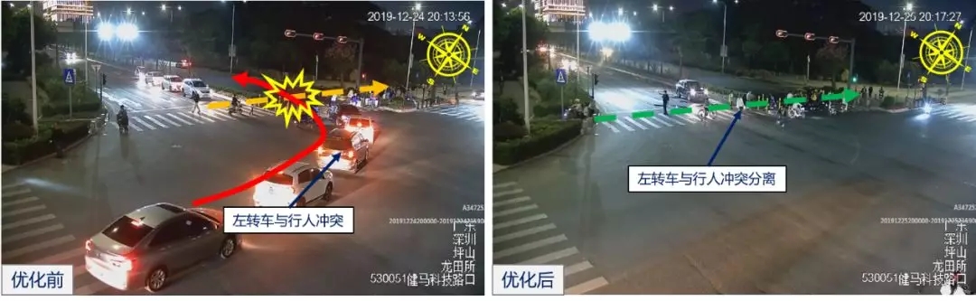 西鄉(xiāng)大道與前進(jìn)二路口夜間信號(hào)燈優(yōu)化前后對(duì)比