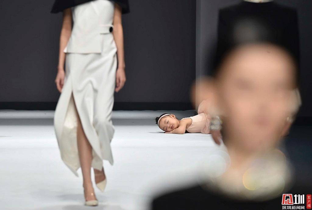 2019年3月14日,深圳時裝周首秀,一位在T臺上睡著的小女孩。