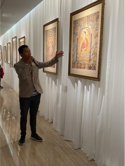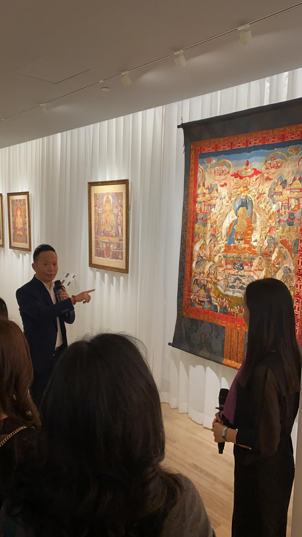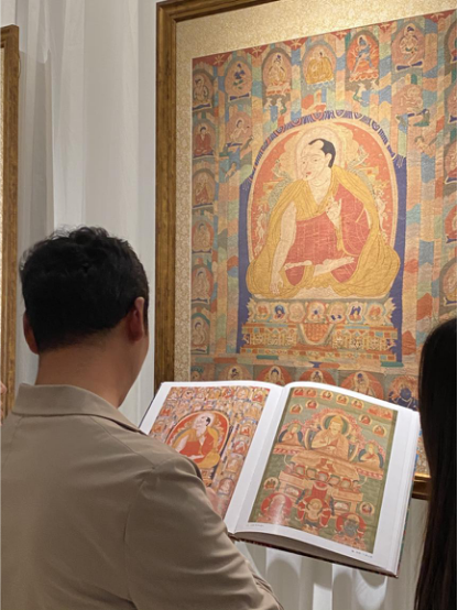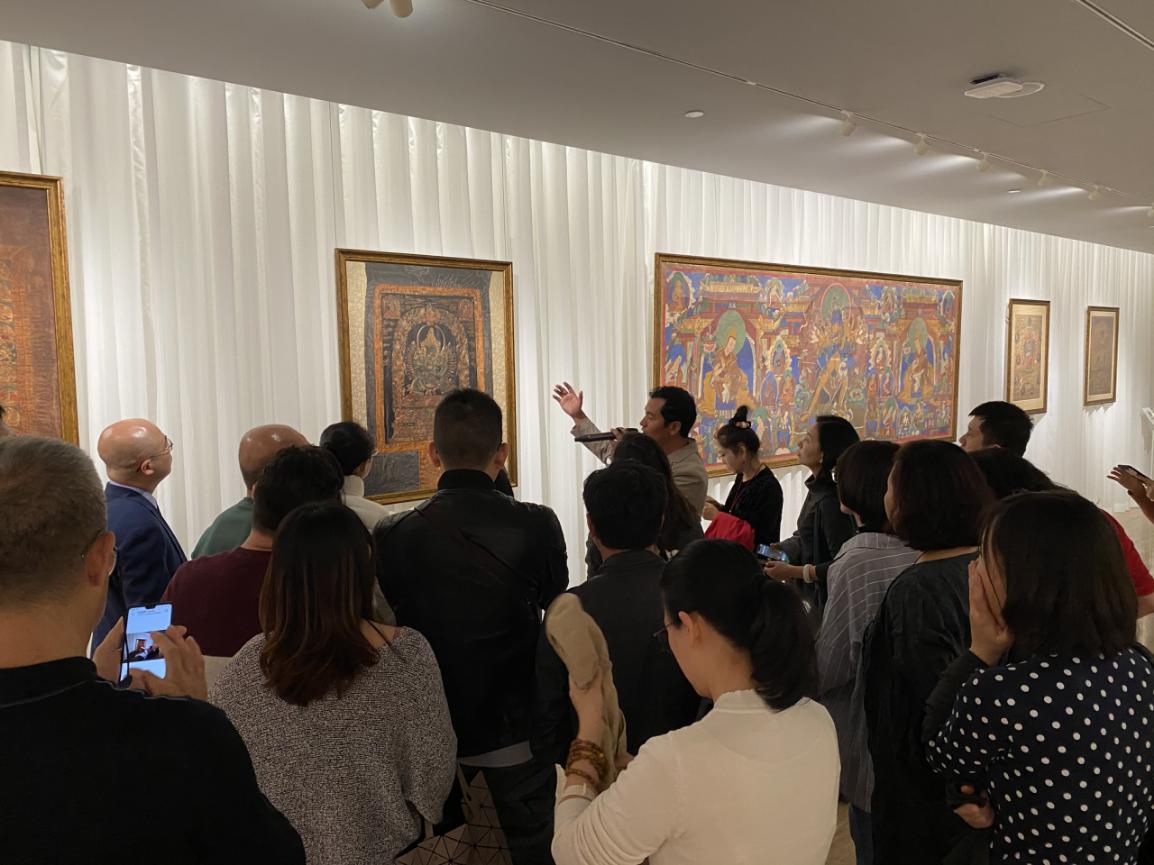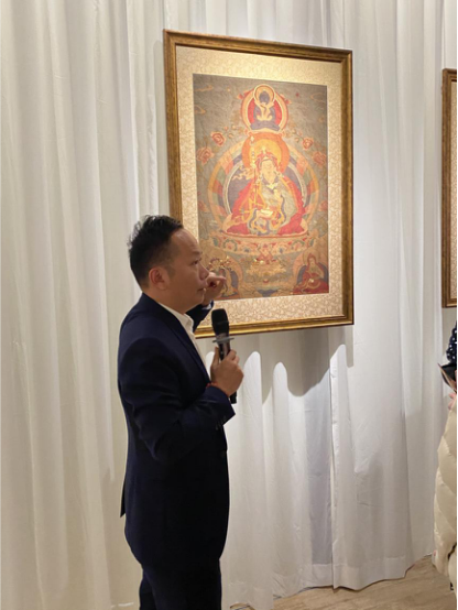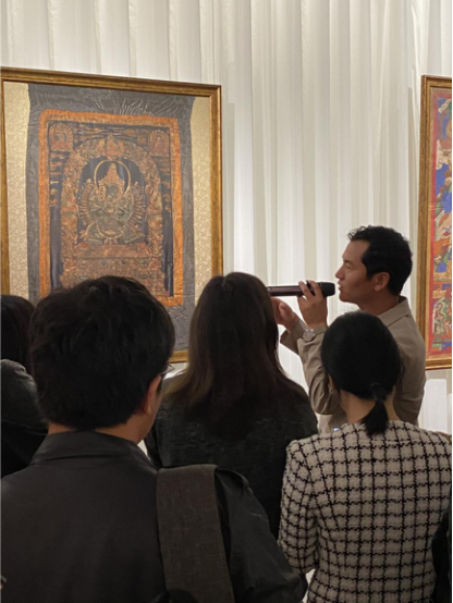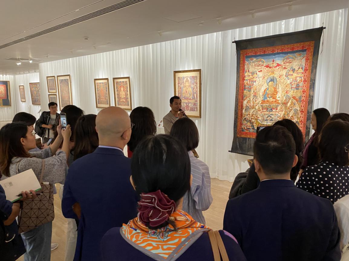 為了讓觀眾更好地了解本次展出唐卡的工藝美及其背后所蘊(yùn)含的人文價(jià)值,桂心堂主人邀請(qǐng)了布達(dá)拉宮唐卡專家——次仁占堆老師、曾長(zhǎng)期生活于蘇州的資深唐卡愛好者葉小龍,一同在1月4日的下午,給觀眾們帶來了一場(chǎng)深入淺出的導(dǎo)覽活動(dòng)。