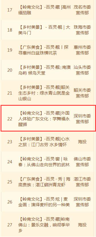 見圳客戶端·深圳新聞網(wǎng)2020年1月21日訊 1月20日,由省委宣傳部指導(dǎo)、“學(xué)習(xí)強(qiáng)國”廣東學(xué)習(xí)平臺主辦的廣東鄉(xiāng)村微視頻大賽獲獎(jiǎng)結(jié)果新鮮出爐。由深圳新聞網(wǎng)拍攝的《外國人體驗(yàn)廣東文化:學(xué)舞福永醒獅》從9375條參賽視頻中脫穎而出,獲得大賽一等獎(jiǎng)及最佳創(chuàng)意獎(jiǎng)。
