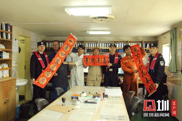 為了讓國際船舶上工作的中國籍船員感受到濃厚的春節(jié)氣息,鹽田邊檢站開展“迎春送福”登輪走訪活動。在實(shí)施登輪檢查的同時,向國際船舶上的中國籍船員贈送春聯(lián)、燈籠、中國結(jié)等節(jié)慶用品,將中國的“年”送上國際船舶,向船員送上新春祝福、節(jié)日問候。