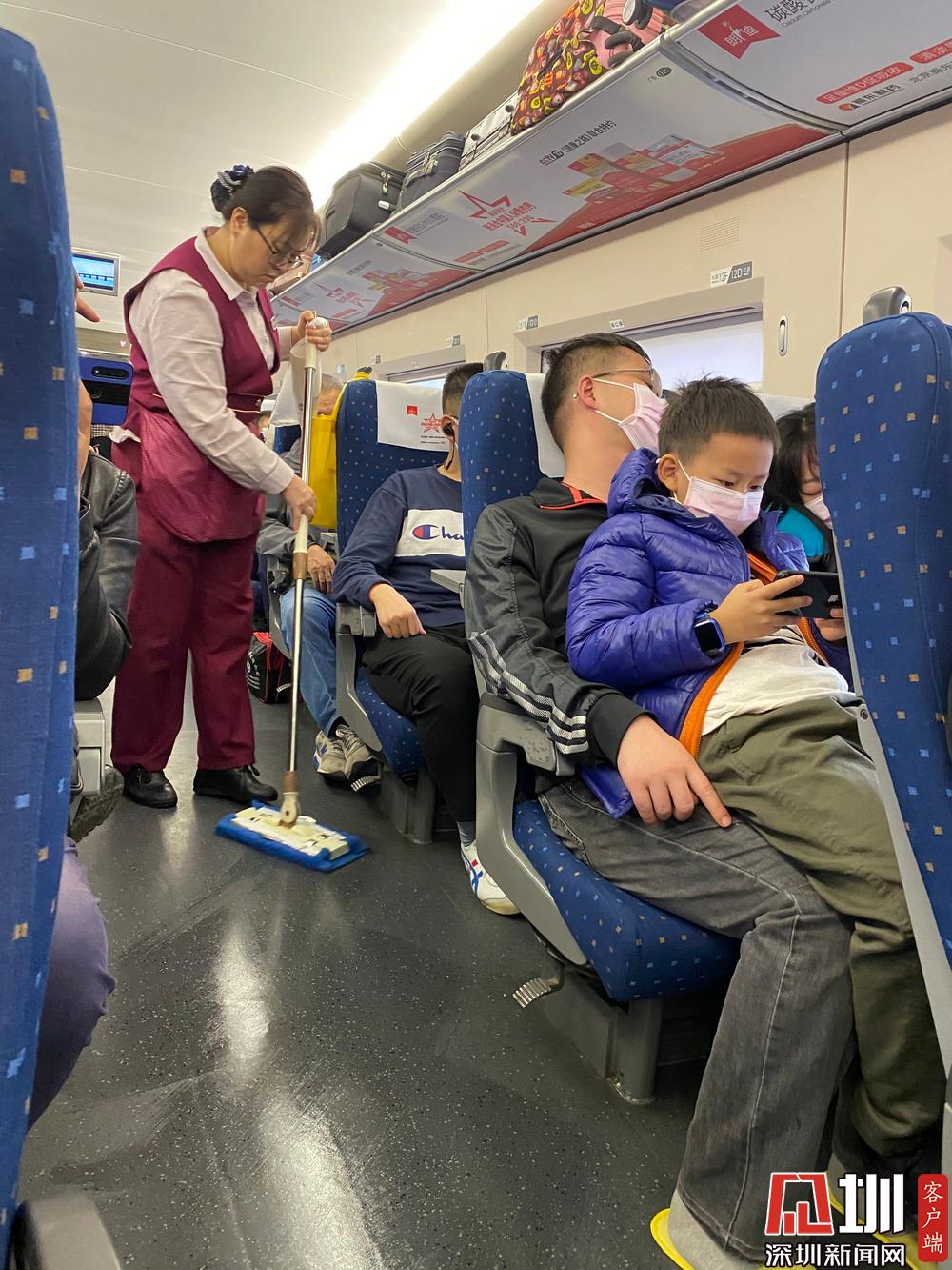 這個(gè)姐姐,隔一會(huì)兒就過(guò)來(lái)拖一次地,所以整個(gè)車廂都特別干凈!見(jiàn)圳客戶端、深圳新聞網(wǎng)記者 劉婷 攝