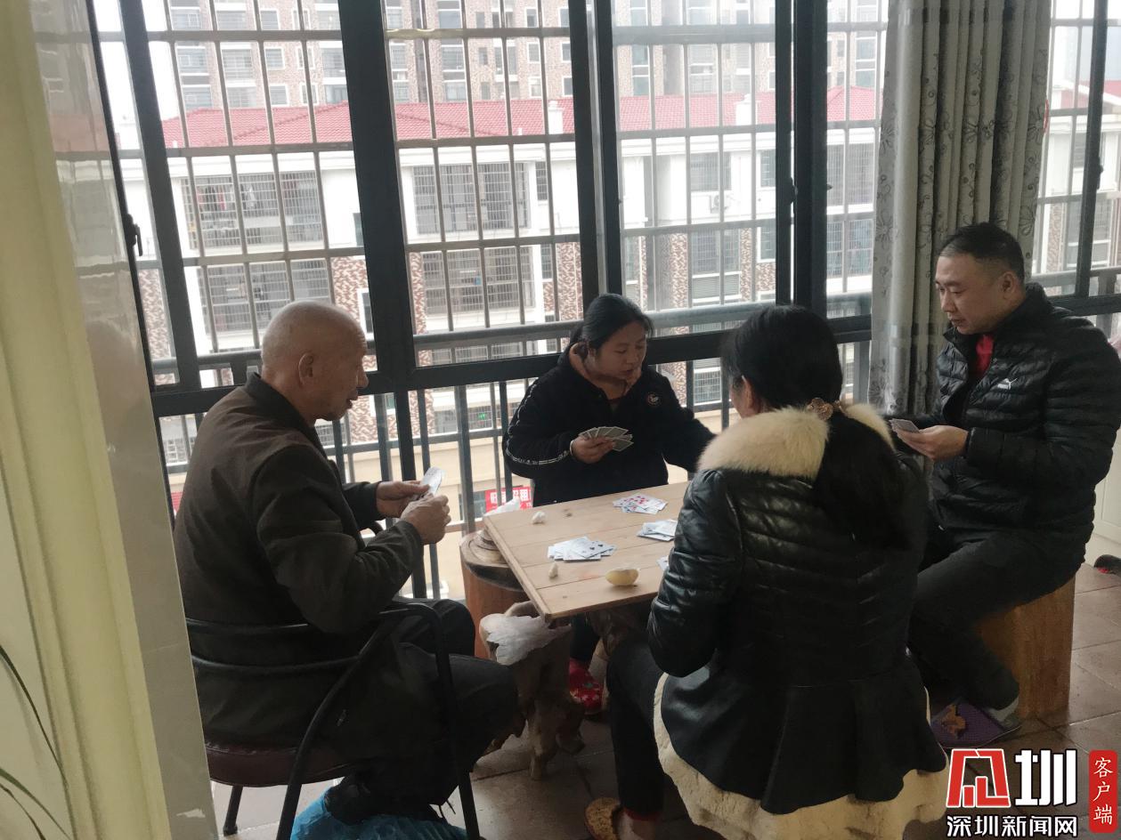 春節(jié),意味著團圓。親戚們從五湖四海回到家鄉(xiāng)和親人們團聚,歡度春節(jié)。在玩撲克牌。