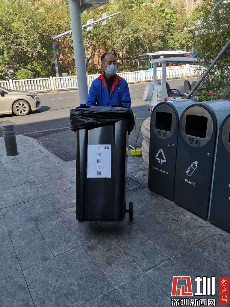 南頭街道在全區(qū)率先投放首批100個防護口罩收集桶。