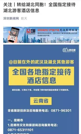 除了這些溫馨通告,包括深圳在內(nèi)的許多城市為方便已外出的湖北人生活,也陸續(xù)出臺了許多措施。