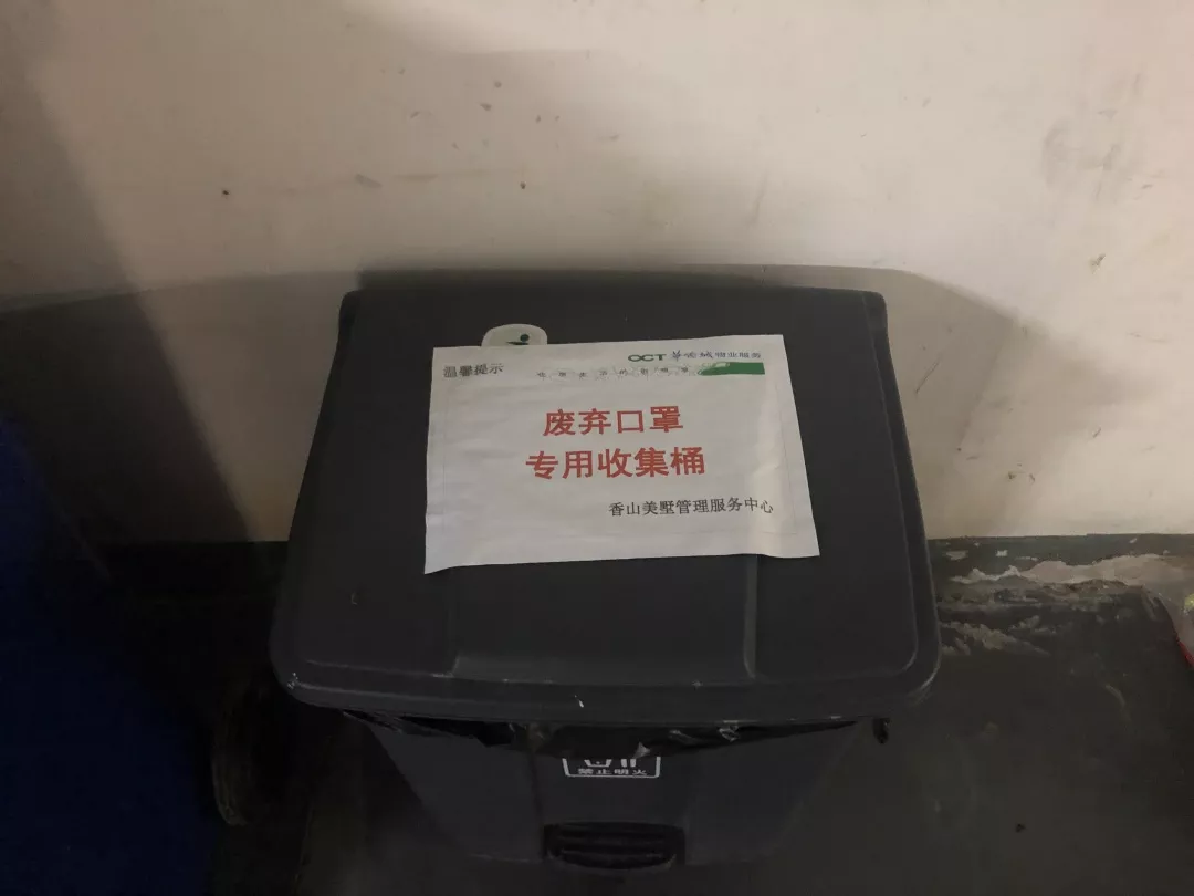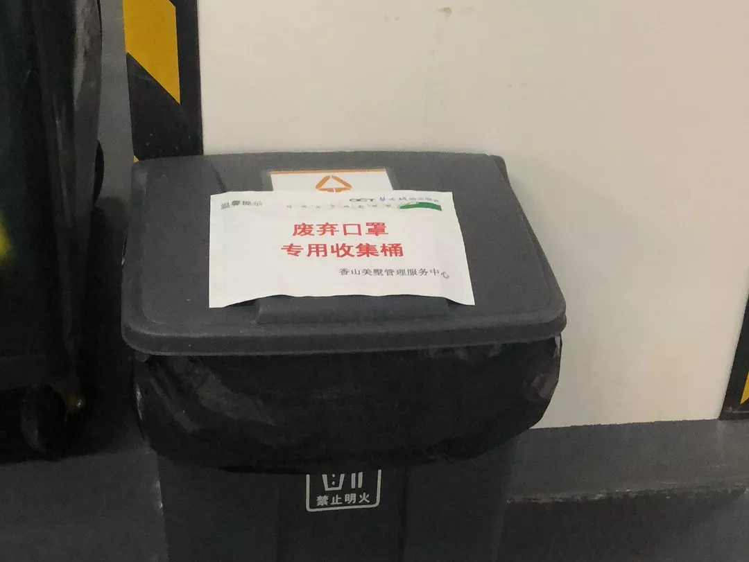 為防止廢棄口罩造成二次污染,管理服務(wù)中心在每棟樓宇垃圾集中收集點(diǎn)處,增設(shè)了“廢棄口罩專用收集桶”規(guī)范處理廢棄口罩;并要求工作人員每天對收集桶消毒加強(qiáng)防護(hù)。