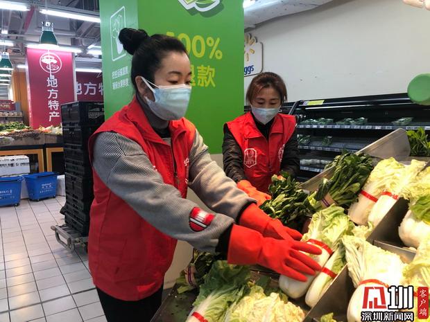 見圳客戶端·深圳新聞網(wǎng)2020年1月31日訊(見圳客戶端、深圳新聞網(wǎng)記者 胡津瑋)戴上口罩、手套,再穿上標(biāo)志性的紅色馬甲,市食藥志愿服務(wù)總隊(duì)的志愿者們紛紛走上超市的各個(gè)崗位,清理貨品、補(bǔ)貨、對購物車購物籃進(jìn)行清潔消毒、為來購物的市民測量體溫…據(jù)了解,由于春節(jié)期間各大商超缺少人手,在市市場監(jiān)管局與團(tuán)市委的指導(dǎo)下,市食藥志愿服務(wù)總隊(duì)迅速調(diào)動(dòng)全市在深的食品藥品安全志愿者,成立了由近300名食品藥品安全志愿者組成的春節(jié)“菜籃子”志愿者保障工作小組,為全市各大商超提供志愿服務(wù),全力保障市場供應(yīng)、消除市民顧慮,在防控疫情特殊期間注入了紅馬甲的正能量。記者今天便走訪了深圳的一家超市,尋找這批紅色的身影,了解他們一天的工作。