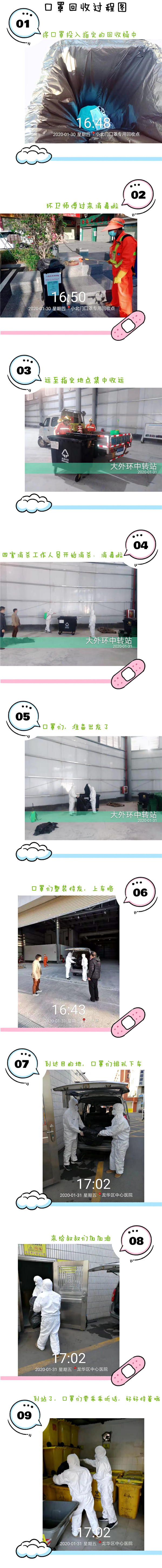 據(jù)了解,廢棄口罩每天由環(huán)衛(wèi)服務(wù)公司定時收集運送至街道回收站,再由消殺公司工作人員著防護服現(xiàn)場消毒后統(tǒng)一運送到龍華區(qū)中心醫(yī)院進行統(tǒng)一專業(yè)化銷毀處理(詳細流程見下圖)。整個處理流程福城街道市政管理服務(wù)中心嚴格把控,每天安排專人進行現(xiàn)場督促處理,堅決防止廢棄口罩因處理不當(dāng)引起的二次污染。