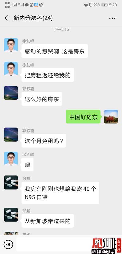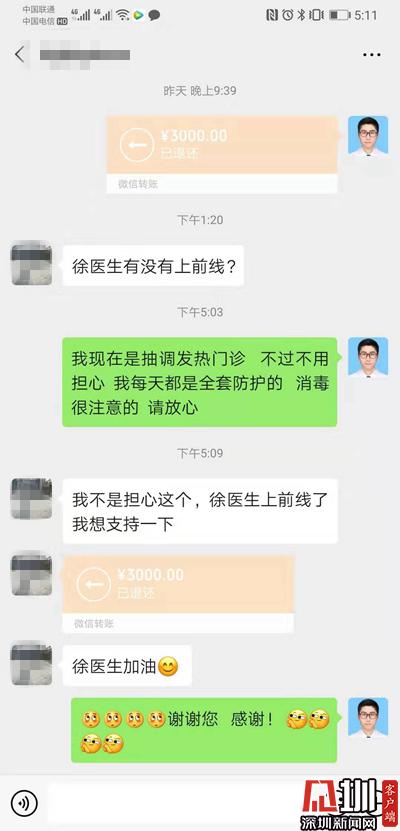 2日上午,寶安中醫(yī)院(集團)隔離病房工作的徐醫(yī)生,遇到了令他十分感動的事。他通過微信向房東交房租,房東問他是不是在防控前線工作,徐醫(yī)生以為房東怕傳染而嫌棄他,連忙向房東解釋自己做好了防護消毒,不用擔(dān)心,沒想到房東直接把房租退了回去,表示要支持徐醫(yī)生在前線工作,真是暖心??!
