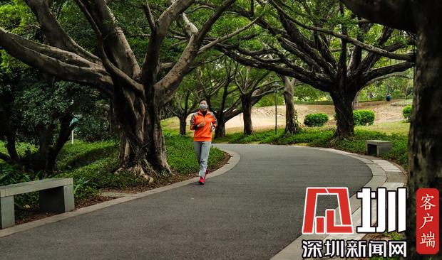 靈芝公園內,偶爾能遇到仍堅持跑步跑步的市民,緊緊戴著地口罩提示著我們疫情尚未結束。
