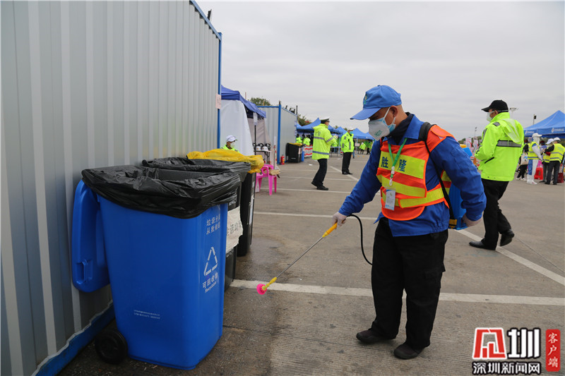 “全副武裝”后,龍崗區(qū)文化廣電旅游體育局局長劉德平(右)準備上一線。