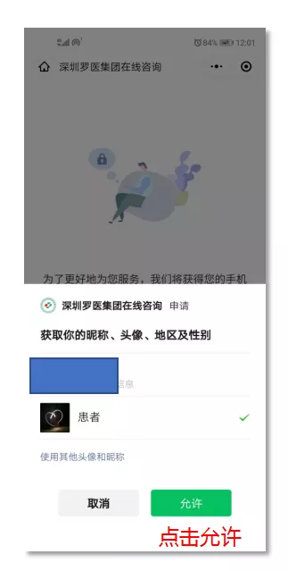 患者首次使用時(shí),需進(jìn)行登錄與授權(quán)