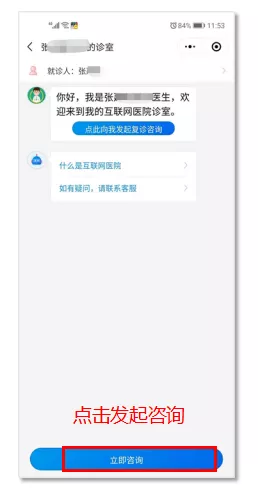 方式一:通過“找醫(yī)生”界面查找醫(yī)生,發(fā)起問診咨詢: