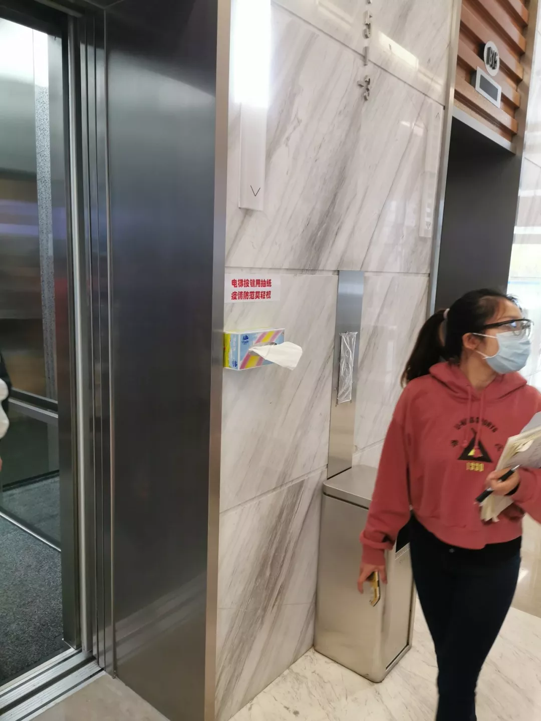 寫字樓電梯處放有抽紙。新華社記者孫飛2月7日攝