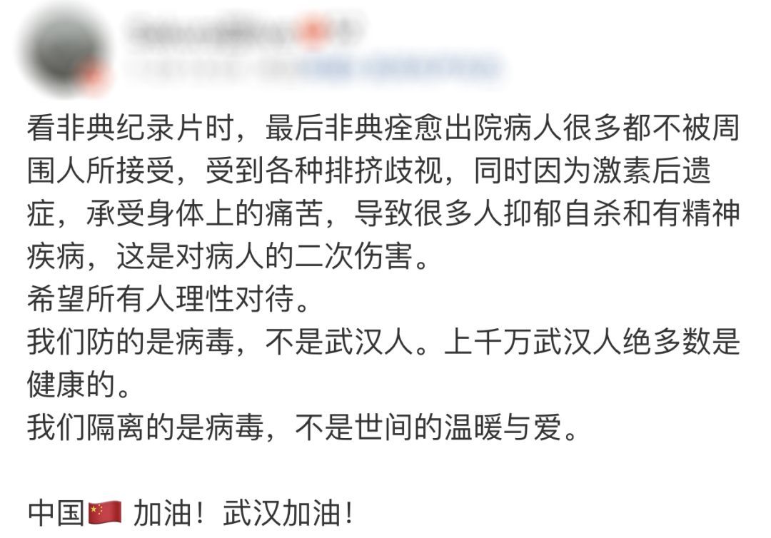出院者身上的病毒已經(jīng)被清除,身體已經(jīng)康復(fù),但心靈上的創(chuàng)傷卻未撫平。