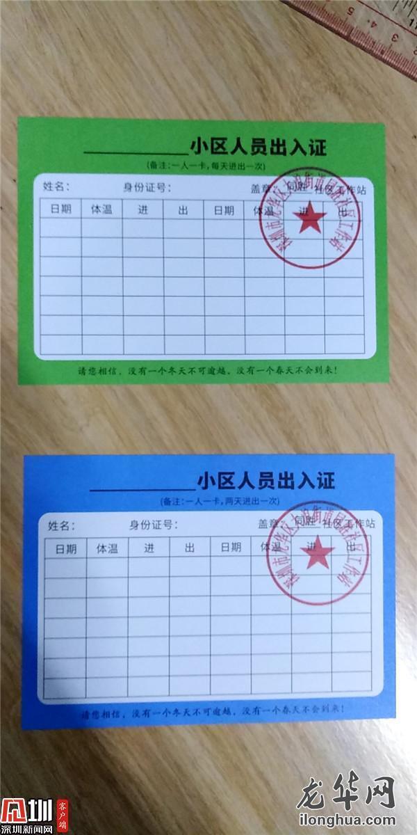 近日,根據(jù)不同居民的情況和需求,大浪街道用四種顏色的卡片對居民出入進(jìn)行分類管理:紅色是有發(fā)熱等異常癥狀、按要求正在居家隔離的人員,黃色是來深14天內(nèi),正在居家隔離且無異常癥狀的人員,可視情況轉(zhuǎn)為其他管理模式。紅、黃兩類人員嚴(yán)禁其出門,由社區(qū)工作站提供物資采購、幫送服務(wù)。藍(lán)色是沒有居家隔離、身體狀況正常的在家人員,憑證可以兩天出入1次;綠色是沒有居家隔離、身體狀況正常的上班人員,憑證每天可以出入1次。