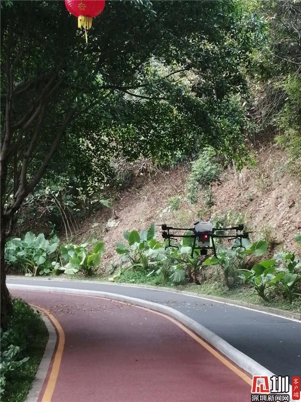 羅湖:多架無人機(jī)對淘金山綠道進(jìn)行全面消毒