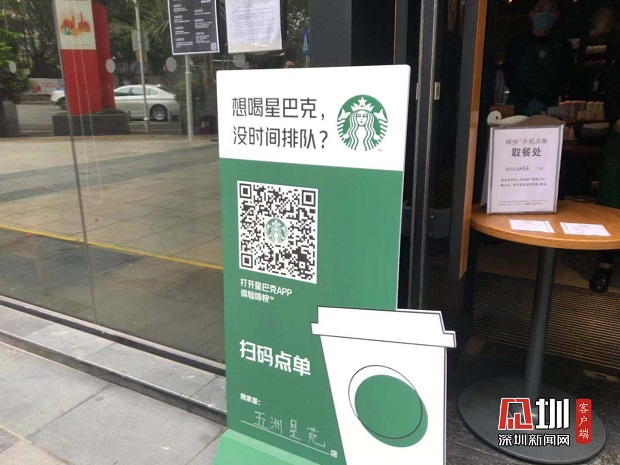 星巴克門前設置“掃碼點單”。