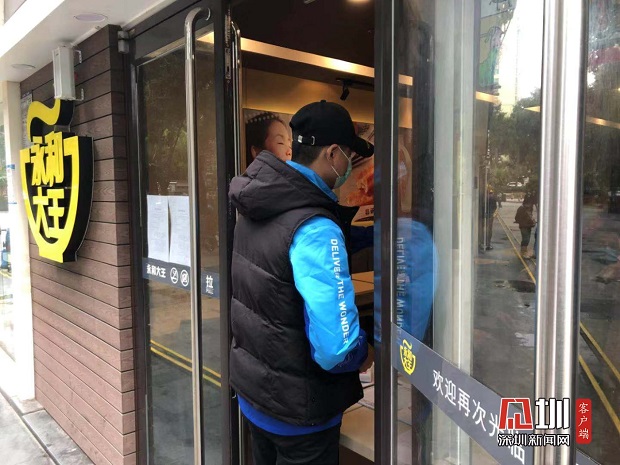 “店內(nèi)員工都是留深人員為主,每個班次都會測兩次體溫,要求員工佩戴口罩并手部消毒后才能上崗?,F(xiàn)場消毒清潔時具備有專門的消毒粉,會每4小時進行一次清潔消毒。”永和大王工作人員向記者介紹道?,F(xiàn)場門口處陸續(xù)有外賣小哥過來店前領取外賣,記者看到,外賣人員前來領取外賣前都要配合店家進行體溫測量,外賣餐盒都以獨立餐盒包裝的方式給到外賣小哥手上,以保證食物衛(wèi)生安全干凈。
