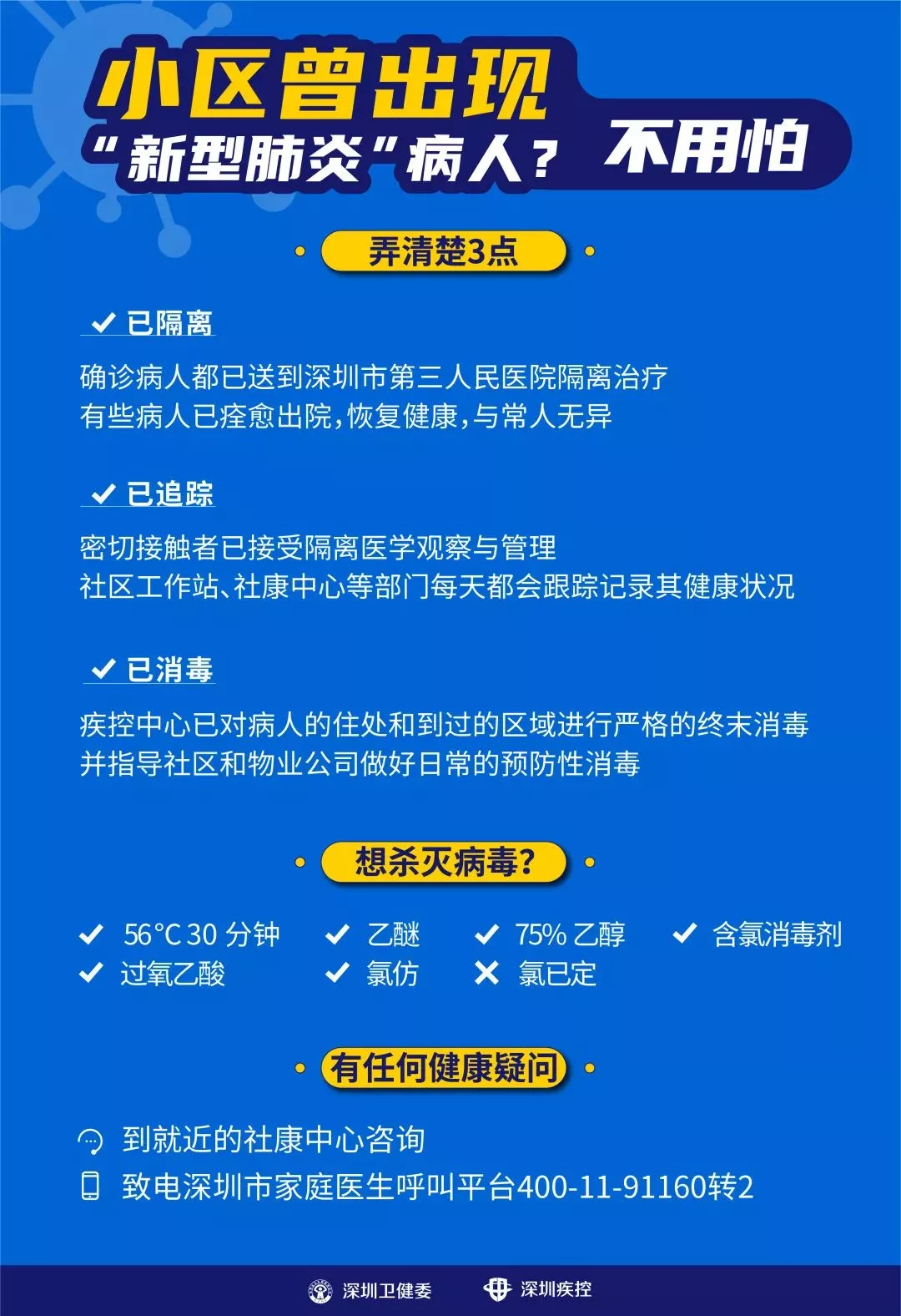 疾控部門已組織專門的消殺隊(duì)伍,對(duì)病人停留過的場所進(jìn)行徹底的綜合消毒,對(duì)小區(qū)外圍的公共場所、休息場所、小區(qū)垃圾的回收?qǐng)鏊?,也開展了預(yù)防性消毒,并指導(dǎo)物業(yè)部門做好日常消毒。