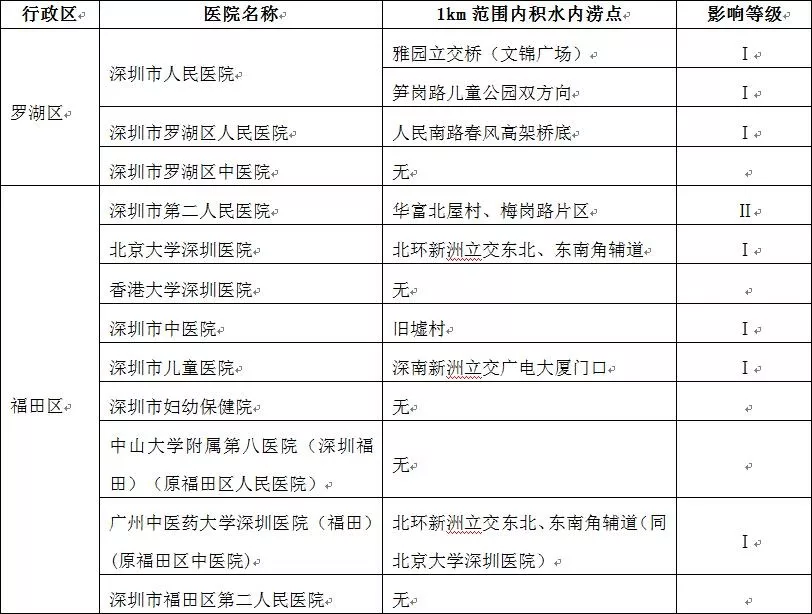 根據(jù)2019年度全市積水內澇報送情況,深圳市水務局初步梳理出全市49家發(fā)熱門診(含1家新型冠狀病毒感染肺炎定點救治醫(yī)院)周邊積水內澇點29處,并結合積水內澇嚴重情況分為Ⅰ、Ⅱ、Ⅲ級。