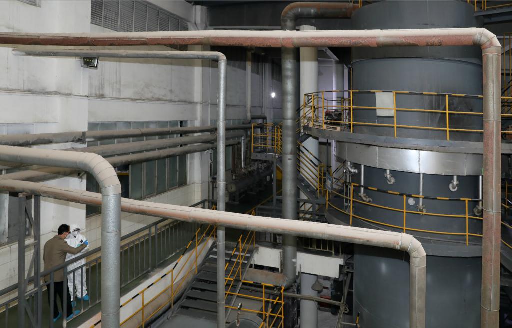 焚燒車間內(nèi),矗立著兩座高達(dá)十余米的熱解焚燒爐。焚燒爐中的溫度高達(dá)1000°C以上,正在焚燒包括新型冠狀病毒在內(nèi)的多種醫(yī)療廢物。