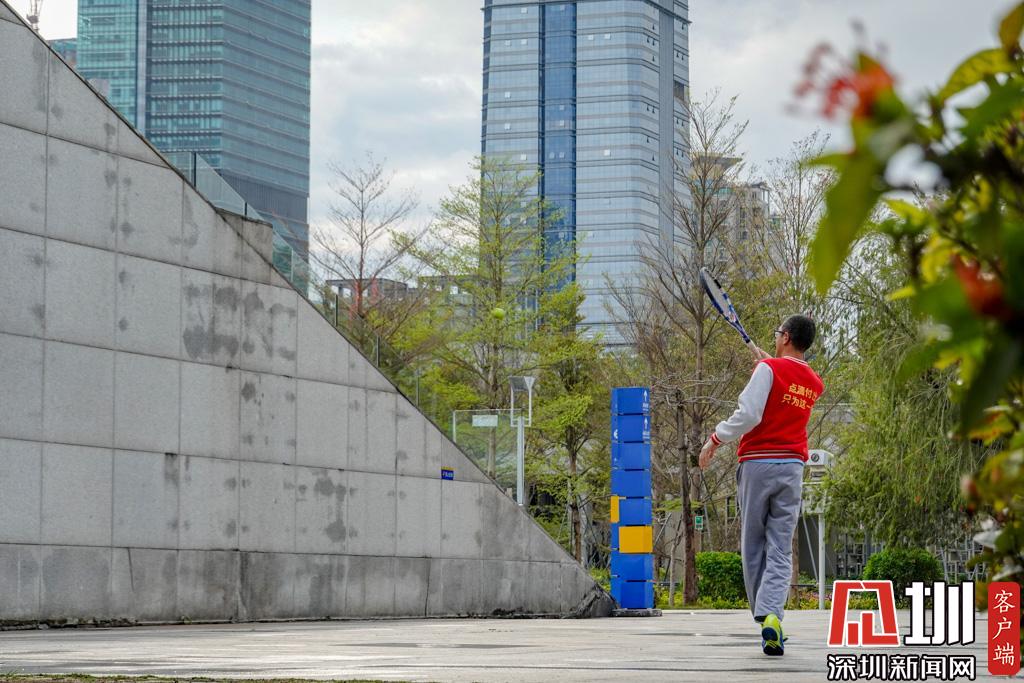 少年宮附近一位市民獨(dú)自對(duì)著墻壁練習(xí)網(wǎng)球