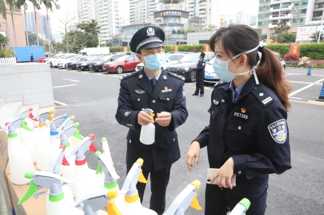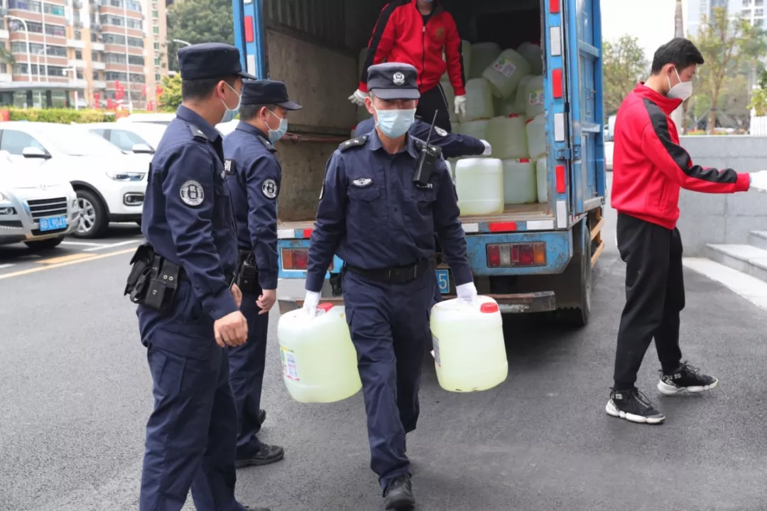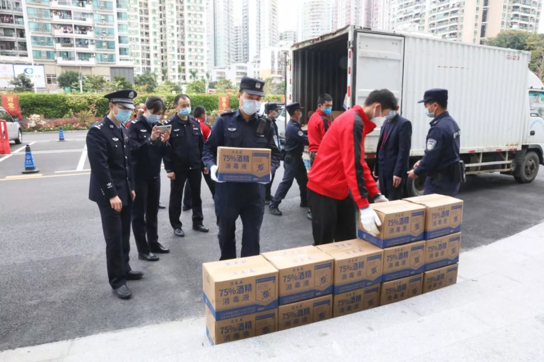 當(dāng)天16時(shí)許,愛心企業(yè)代表肖先生帶著50桶20公斤消毒液、480瓶消毒酒精、20個(gè)噴壺來到了福田分局,捐贈給了福田警方。福田分局黨委委員、政治處主任桂禮強(qiáng)代表分局接收捐贈抗疫物資,并對愛心企業(yè)表示感謝。
