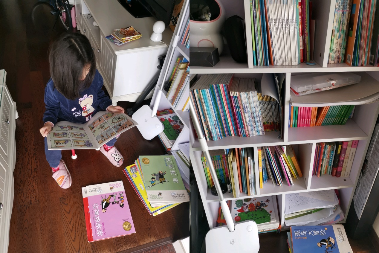 (圖二:看書,她有自己開放式的小書柜,有時(shí)候是我們陪讀)