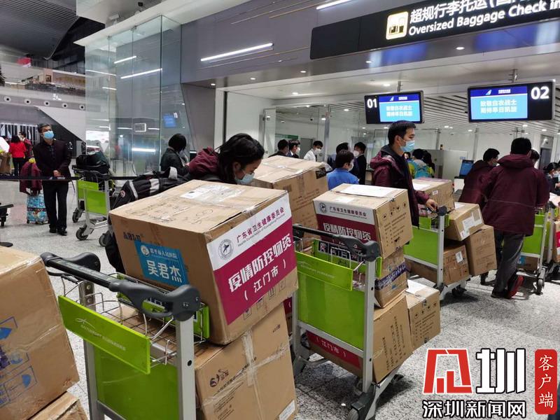 廣東援鄂醫(yī)療隊主要行李都是前方緊缺的抗疫物資。