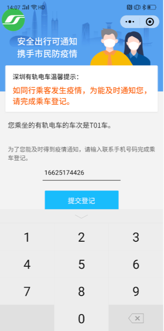 第三步:輸完其他乘客手機(jī)號后,收起鍵盤,再點(diǎn)擊【提交登記】按鈕即可完成登記。