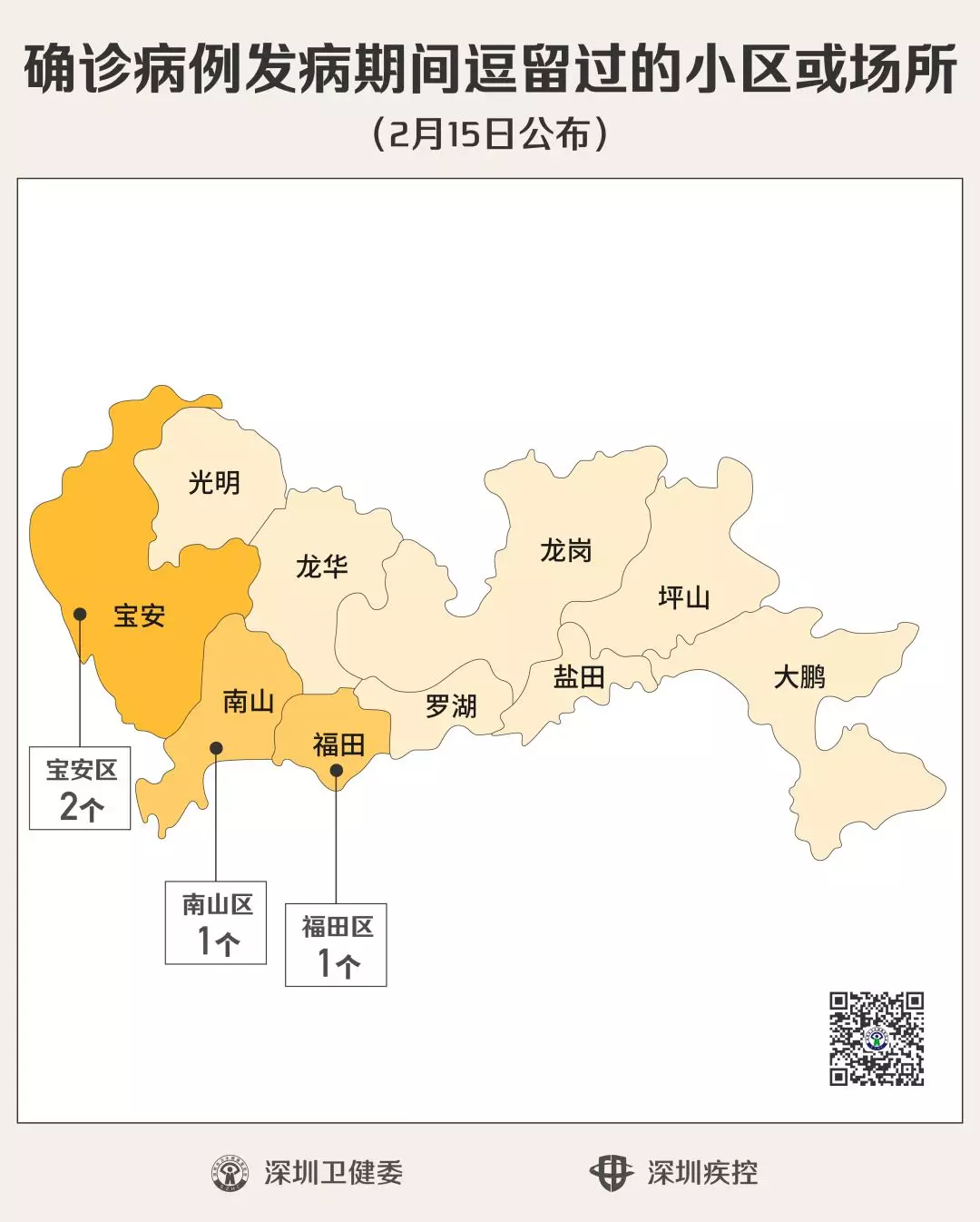 經(jīng)過(guò)疾控專業(yè)人員的流行病學(xué)調(diào)查確認(rèn),2月15日,深圳新公布4個(gè)“涉病”小區(qū)(場(chǎng)所),有新確診的病人在發(fā)病期間曾經(jīng)逗留。