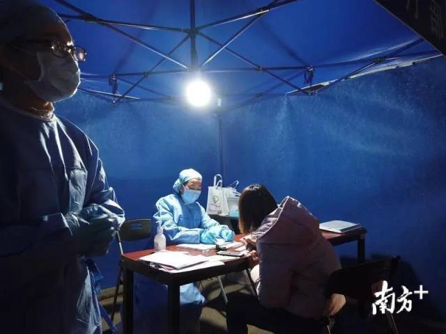 龍崗區(qū)坪地街道黨員干部和工作人員深夜冒雨開展疫情檢查?!?/p>