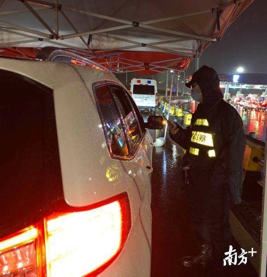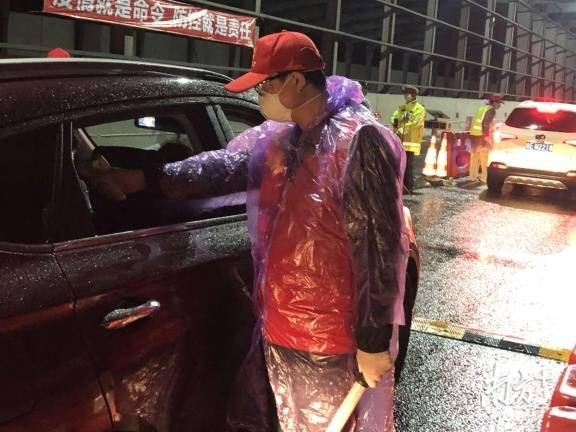 寶安區(qū)羅田檢疫站指揮部總指揮,石巖街道黨工委副書記、人大工委主任鄧亞虎,石巖街道副主任林志明和羅田交通聯(lián)合檢疫站臨時(shí)黨支部黨員冒雨檢查。當(dāng)晚,深圳市公安局經(jīng)偵支隊(duì)支援4名民警在現(xiàn)場冒雨防疫檢查。