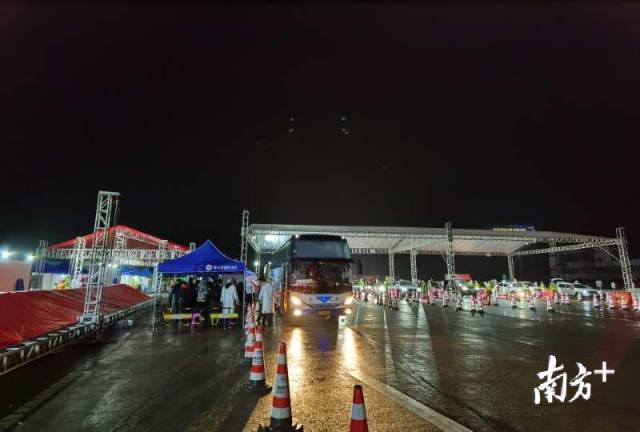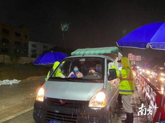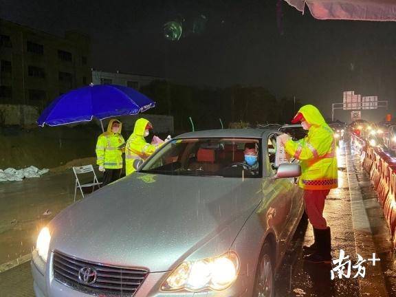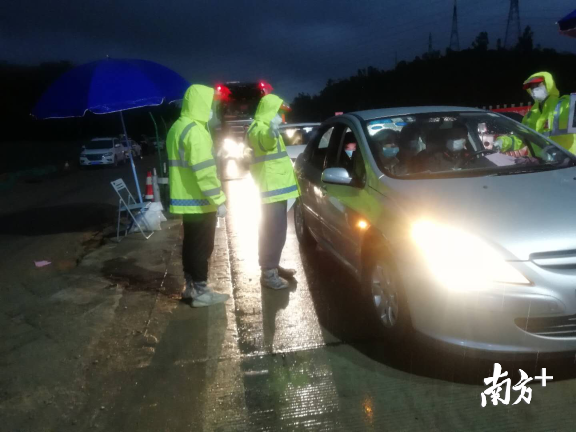 “富地崗防疫檢查點(diǎn)地理位置受限,條件相對艱苦。但我們不被困難所嚇到,不被風(fēng)雨而耽擱我們查驗(yàn)工作?!逼旱亟值傈h員干部和工作人員在大雨中堅(jiān)守,就在晚上10:30左右,該卡點(diǎn)攔截2臺粵B牌車輛,來自湖北黃岡籍人員一家5人,居住橫崗街道,坪地街道值班領(lǐng)導(dǎo)立即協(xié)調(diào)安排交警、派出所帶車,并成功和橫崗街道對接。