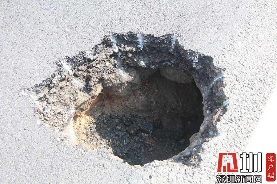 上午10點40分,記者在現(xiàn)場看到,該路面有一個直徑約一米、深約一米的坑口,旁邊還有一道長約20米的裂痕。工作人員正在使用雷達儀器對地面情況進行勘測,同時該路段及靠深南大道一條車道已暫時被封鎖,福田區(qū)交警大隊也在現(xiàn)場指揮交通。據(jù)悉,該位置較臨近的地鐵2、3路線的站點,一位深圳地鐵的工作人員告訴記者,目前該事故沒有對其線路運行造成影響,也非先前修挖地鐵所致。