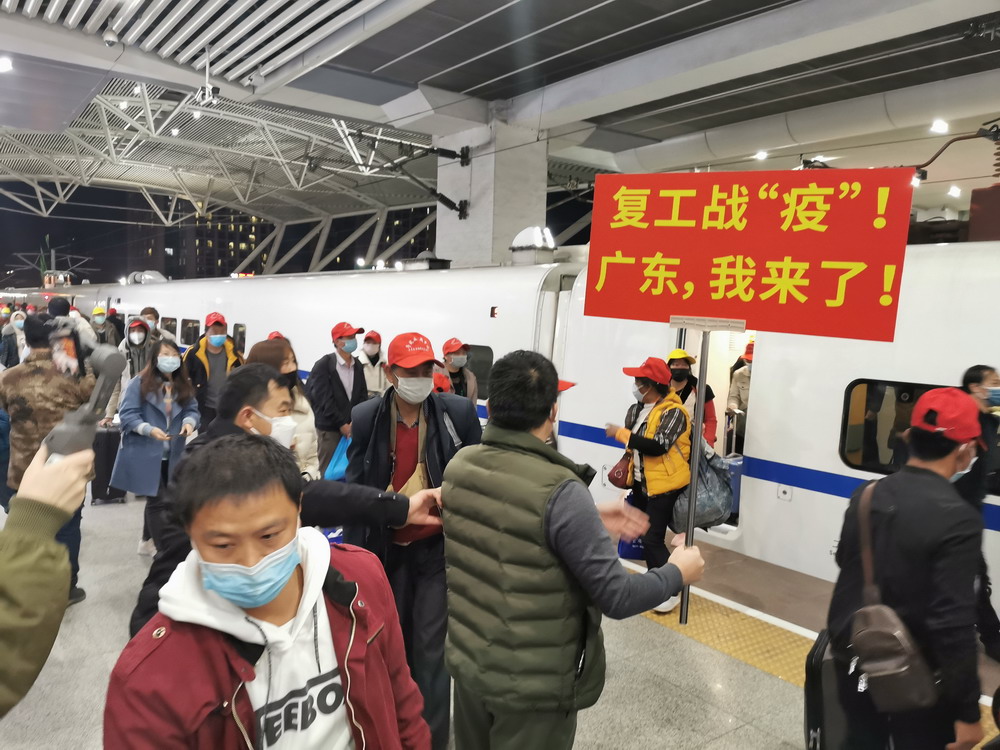 目前,在全省上下全力抗擊新冠肺炎疫情的同時(shí),廣東各類(lèi)企業(yè)已陸續(xù)復(fù)工復(fù)產(chǎn)。針對(duì)節(jié)后部分務(wù)工人員返程難、部分企業(yè)用工難的問(wèn)題,廣東省人社部門(mén)在全面落實(shí)省委省政府疫情防控決策部署的前提下,主動(dòng)加強(qiáng)與勞務(wù)輸出省份溝通對(duì)接,對(duì)疫情相對(duì)平穩(wěn)、來(lái)粵就業(yè)人員相對(duì)集中的云南、四川等部分省份,聯(lián)合當(dāng)?shù)厝松绮块T(mén)共同組織開(kāi)行“點(diǎn)對(duì)點(diǎn)”返粵返崗專列,為務(wù)工人員提供全流程的返崗對(duì)接服務(wù)。據(jù)悉,在本趟列車(chē)開(kāi)行前,廣東省人社部門(mén)根據(jù)重點(diǎn)企業(yè)和項(xiàng)目復(fù)工復(fù)產(chǎn)安排,向云南省人社部門(mén)提供不同時(shí)段的企業(yè)空缺崗位共11萬(wàn)個(gè),由當(dāng)?shù)厝松绮块T(mén)按需組織發(fā)動(dòng)務(wù)工人員并開(kāi)展集中健康檢測(cè),出具健康證明;途中,云南人社部門(mén)會(huì)同鐵路部門(mén),共同落實(shí)好務(wù)工人員進(jìn)站、候車(chē)、乘車(chē)、出站等環(huán)節(jié)的疫情防控和客運(yùn)服務(wù)等措施,確保復(fù)工人員安全、有序、溫馨出行;到粵后,廣東人社部門(mén)提供專車(chē)將務(wù)工人員接駁至企業(yè),幫助企業(yè)做好疫情期間員工組織接收、上崗復(fù)工等準(zhǔn)備工作。廣東省人社廳相關(guān)工作人員表示:“今年受疫情影響,節(jié)后短期缺工現(xiàn)象比往年更為突出。特殊情況需要特別舉措,除了讓務(wù)工者免費(fèi)乘坐返崗專列,我們還為一些去汕頭、陽(yáng)江等較遠(yuǎn)地區(qū)企業(yè)而沒(méi)法當(dāng)天到達(dá)的零散務(wù)工者,貼心地提供免費(fèi)住宿,還買(mǎi)好次日去企業(yè)所在地的車(chē)票,送他們上車(chē),并對(duì)接當(dāng)?shù)厝松绮块T(mén)安排車(chē)輛接駁至廠。我們通過(guò)這種‘一條龍’無(wú)縫對(duì)接服務(wù),既滿足企業(yè)復(fù)產(chǎn)的用工需求,又降低返程運(yùn)輸?shù)囊咔閭鞑ワL(fēng)險(xiǎn)”。