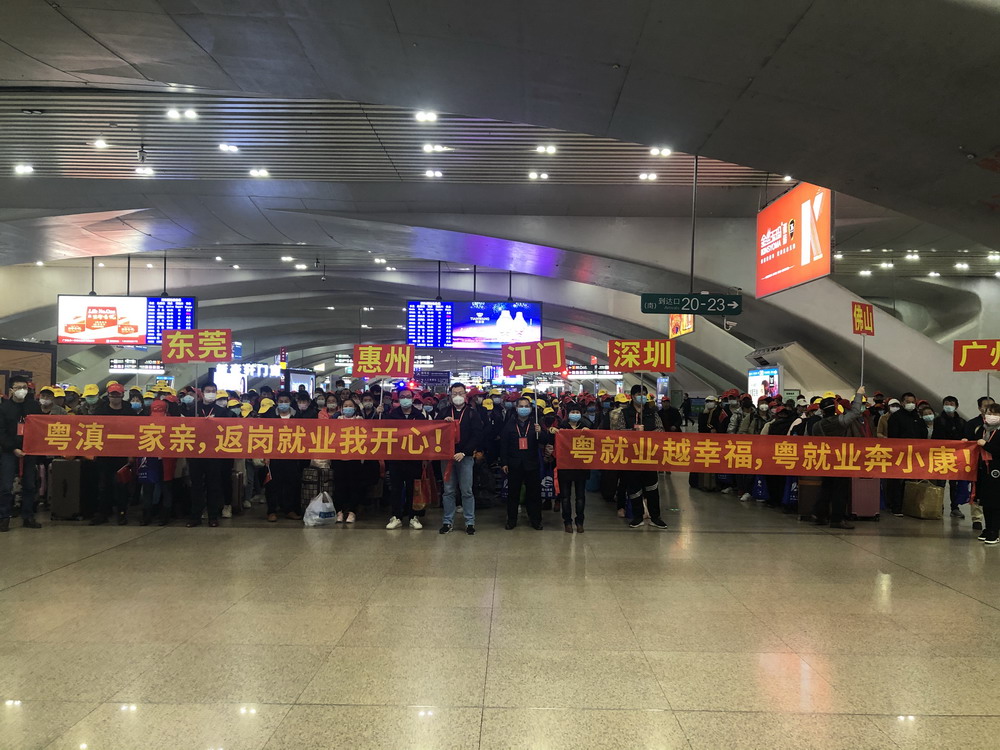見(jiàn)圳客戶端·深圳新聞網(wǎng)2020年2月19日訊 2月18日14時(shí)36分,載有496名云南籍務(wù)工人員的D4856次列車(chē)從昆明南站開(kāi)出,于當(dāng)日22時(shí)36分抵達(dá)廣州南站,全面拉開(kāi)了省際協(xié)作組織異地務(wù)工人員節(jié)后有序返粵返崗的序幕。據(jù)悉,這是廣東省人社廳和云南省人社廳共同策劃,“點(diǎn)對(duì)點(diǎn)”訂制打造的首趟返粵專列,車(chē)上的乘客都是節(jié)前已在廣東就業(yè)的返鄉(xiāng)員工,分別來(lái)自云南昆明、曲靖、紅河、昭通等7個(gè)市州。雖然現(xiàn)在新冠肺炎疫情還未完全過(guò)去,但這496名務(wù)工人員將帶著政府免費(fèi)提供的返崗專列“大禮包”,乘著憧憬與希望,分別前往廣州、深圳、佛山、東莞、惠州等市開(kāi)始新一年的工作和生活。來(lái)自云南文山州的李先生在采訪中激動(dòng)表示,自己已在廣東工作兩年多,廣東的就業(yè)環(huán)境好,這次能在政府幫助下免費(fèi)回來(lái)上班,一路上還有人社部門(mén)工作人員帶隊(duì)指引,感到非常幸運(yùn),一定會(huì)好好珍惜,努力工作。