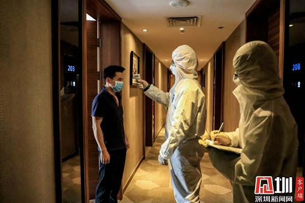 派駐酒店的疫情防控工作人員上門開展體溫測(cè)量