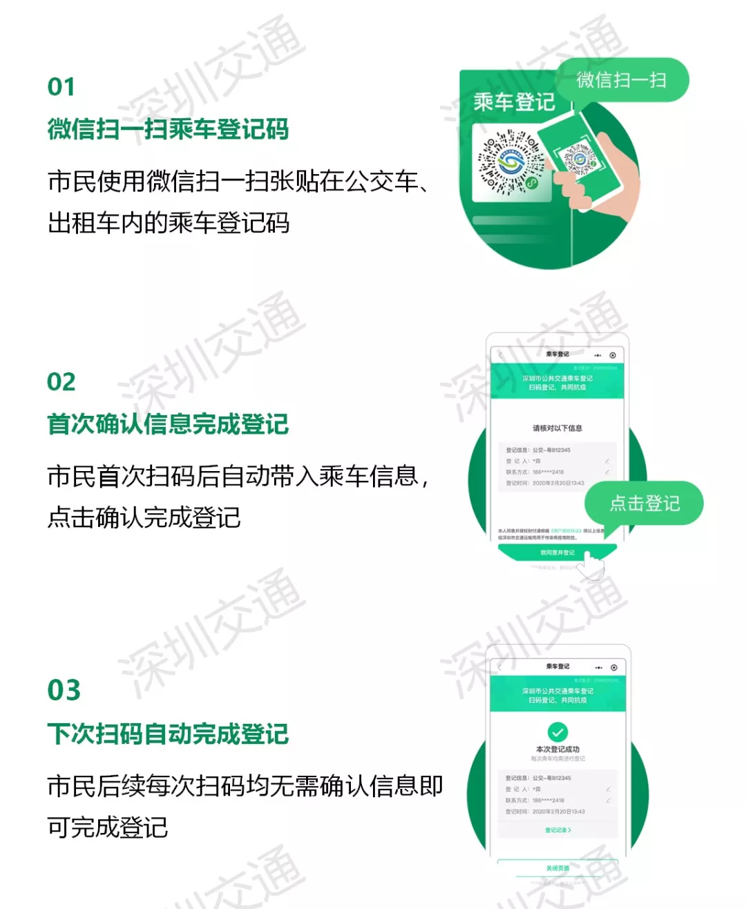 回答:深圳搭乘公交、出租車的市民請主動進行乘車登記。同時,司乘人員也需每日進行乘車登記。