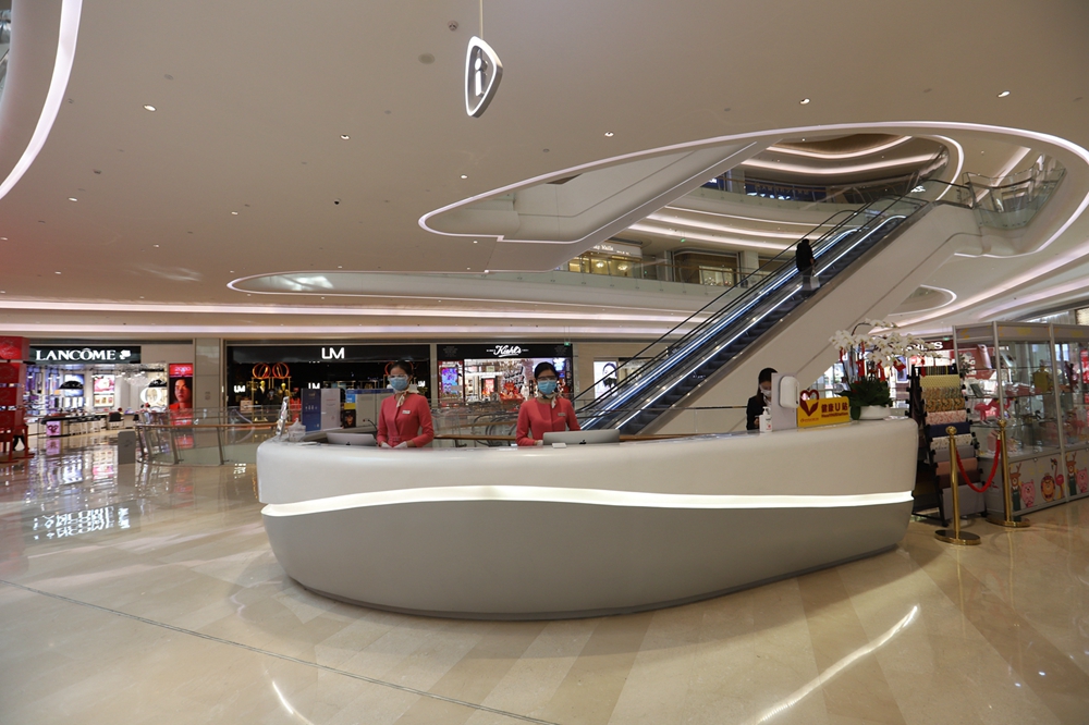 在商場一樓的客戶服務(wù)中心,工作人員告訴記者,壹方城給前來購物的市民提供必要的消毒清潔服務(wù),在主入口增加免洗消毒液供顧客使用,并通過場內(nèi)廣播和LED屏播報(bào)防疫知識(shí)和相關(guān)宣傳信息,加強(qiáng)顧客對(duì)疫情的重視和了解,還向入場顧客免費(fèi)派送涼茶用于防疫。此外,市民還可憑積分在服務(wù)臺(tái)免費(fèi)兌換口罩,商場還可免費(fèi)幫會(huì)員代購,并送貨上門。