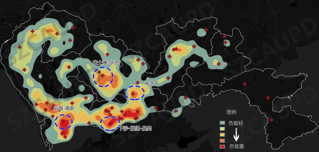 復(fù)工正加快步伐有序地進(jìn)行著,但是疫情防控也到了“最吃勁的關(guān)鍵節(jié)點(diǎn)”,更要穩(wěn)住。輸入性風(fēng)險增大,加上復(fù)工人員聚集帶來的風(fēng)險,考驗(yàn)著城市管理的能力與效率。此前,深圳的防控風(fēng)險主要在于“涉疫”小區(qū)。截至2月24日24時,深圳市累計(jì)報告確診病例417例,分布于250個小區(qū)(場所),主要集中在城市中心地區(qū)。從下面的數(shù)據(jù)分布圖來看,我們可以看到了特別是在深圳的東南部,數(shù)點(diǎn)相對密集,而這恰好又與我市科創(chuàng)企業(yè)的分布發(fā)生一定程度的重合。逐步復(fù)工之后,防控重點(diǎn)將轉(zhuǎn)向工作場所。一方面是工作人口的高密度集聚與交往,導(dǎo)致病毒傳染的風(fēng)險加大,深圳就業(yè)人員高度密集的地區(qū)將是高風(fēng)險區(qū),如車公廟、高新園、華強(qiáng)北等地區(qū);另一方面,涉疫小區(qū)及其周邊可能會出現(xiàn)的潛在感染者,將有可能隨著工作通勤進(jìn)一步傳播。基于百度慧眼通勤大數(shù)據(jù)分析涉疫小區(qū)居民的工作地點(diǎn)分布,未來可能涉疫的工作場所主要集中在福田-羅湖-南山中心一帶,并在局部地區(qū)形成集聚區(qū)。而龍華、寶安、龍崗也有局部相對高集聚的地區(qū)。這些都是深圳近期應(yīng)重點(diǎn)防疫的區(qū)域。▼ 深圳近期應(yīng)重點(diǎn)防疫的空間地圖