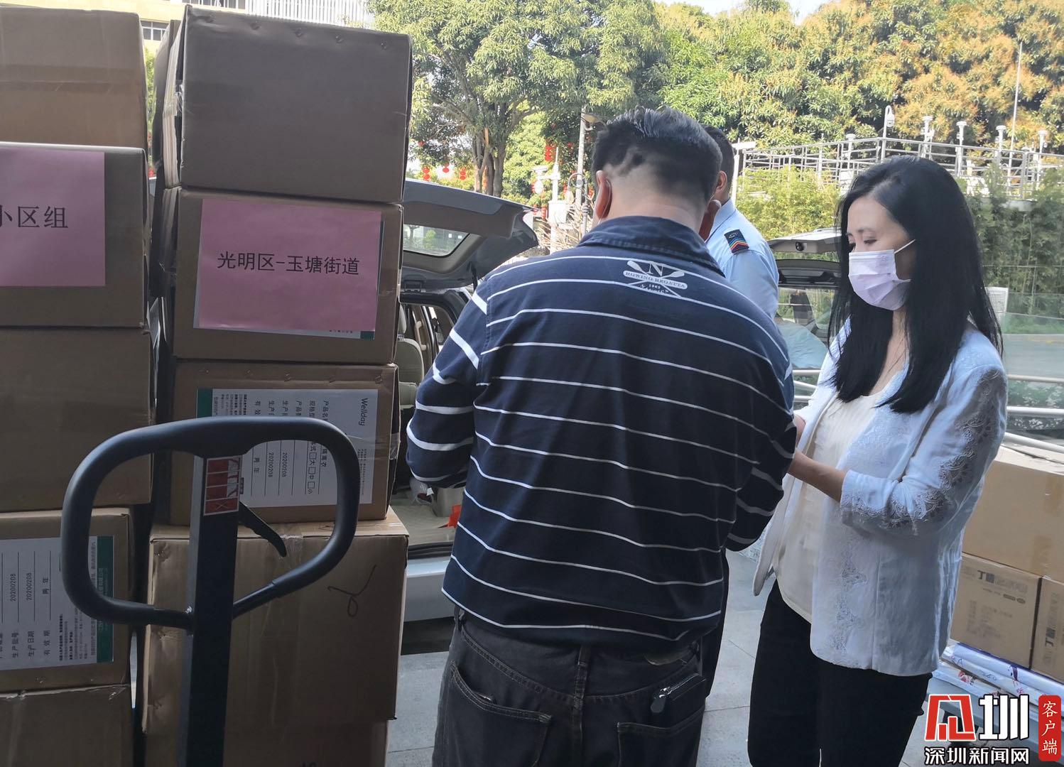 光明區(qū)玉塘街道工作人員領(lǐng)取防疫物資