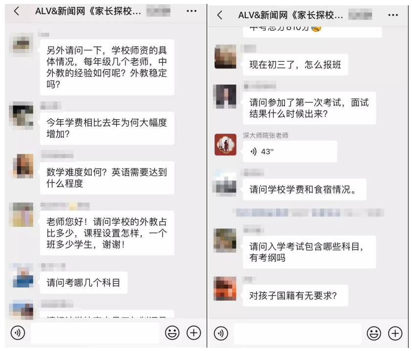 據(jù)介紹,在這三場探?;顒?dòng)中,招生官耐心而又細(xì)致的逐一為家長答疑解惑,贏得家長對(duì)本次活動(dòng)的高度認(rèn)可。以下為“家長探校團(tuán)”微信群內(nèi)互動(dòng)截圖: