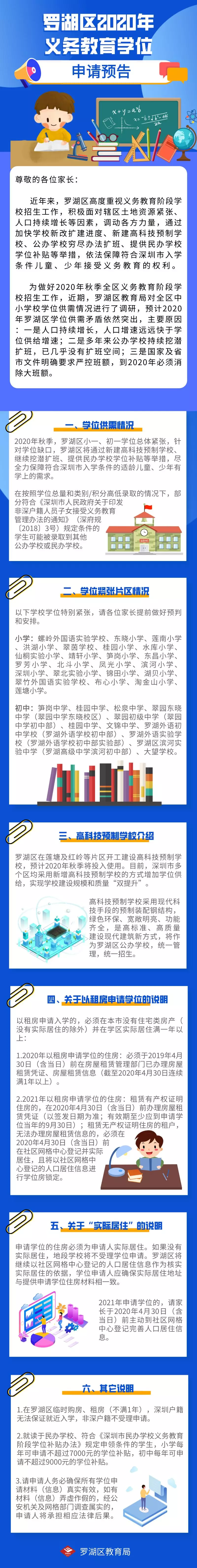 記者29日從羅湖區(qū)教育局了解到,為做好2020年秋季全區(qū)義務(wù)教育階段學(xué)校招生工作,近期,羅湖區(qū)教育局對(duì)全區(qū)中小學(xué)校學(xué)位供需情況進(jìn)行了調(diào)研。調(diào)研結(jié)果顯示,由于人口增速遠(yuǎn)遠(yuǎn)快于學(xué)位供給增速,擴(kuò)班空間有限以及國(guó)家及省市文件明確要求嚴(yán)控班額的要求,預(yù)計(jì)2020年羅湖區(qū)學(xué)位供需矛盾依然突出。申請(qǐng)預(yù)告指出,按照學(xué)位總量和類別/積分高低錄取原則,部分符合規(guī)定條件的學(xué)生可能被錄取到其他公辦學(xué)?;蛎褶k學(xué)校。部分學(xué)校學(xué)位特別緊張,請(qǐng)各位家長(zhǎng)提前做好預(yù)判和安排。針對(duì)2021年申請(qǐng)學(xué)位的學(xué)生,請(qǐng)家長(zhǎng)于2020年4月30日(含當(dāng)日)前主動(dòng)到社區(qū)網(wǎng)格中心登記完善人口居住信息。