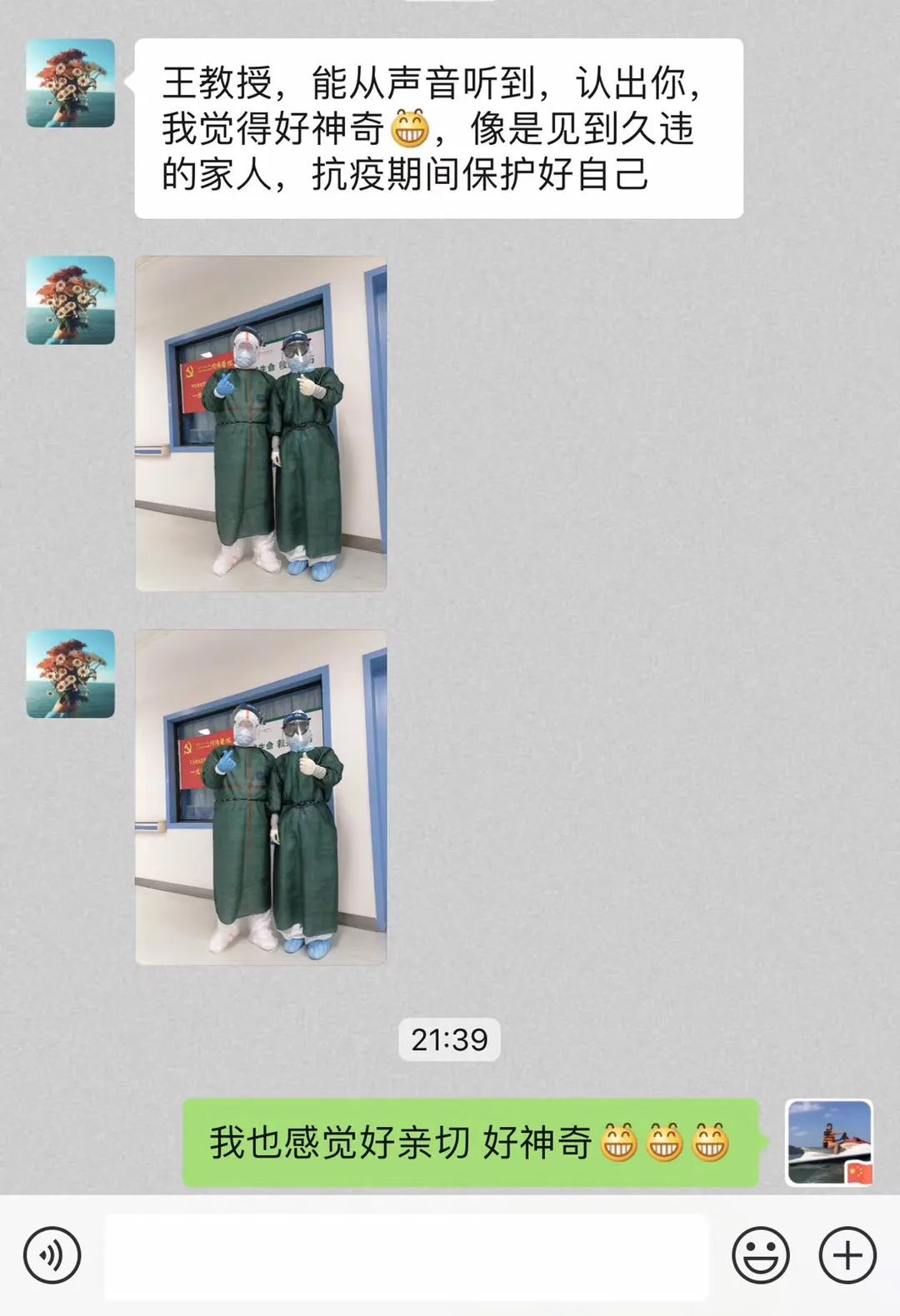 “雖然口罩、防護(hù)面罩隔絕我們的面容,但是我們的聲音、我們的心意依然在一起。愿在這場(chǎng)戰(zhàn)斗中,所有認(rèn)識(shí)我的和不認(rèn)識(shí)我的兄弟姐妹們、同袍們好好保重!”