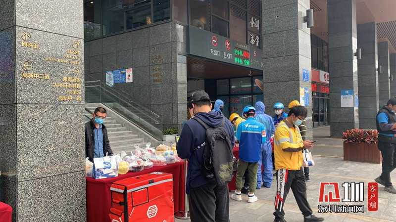目前,人員用餐還是以外賣為主,科興科學園的美食街除了服務本園區(qū)外,也為周邊人員提供用餐服務。園區(qū)鼓勵大家盡量線上點餐,由相關人員下樓統(tǒng)一取餐,再分散自行用餐,避免人員聚集。
