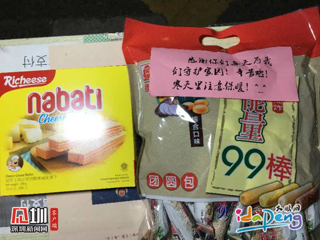 2月18日晚上,一輛奔馳車停在歐新?lián)峡c,車上下來一名女士,放下一大包零食,說了句“辛苦了”轉(zhuǎn)身就走了……零食上還貼著一張便條:“感謝你們每天為我們守護家園!辛苦啦!寒天里注意保暖!”