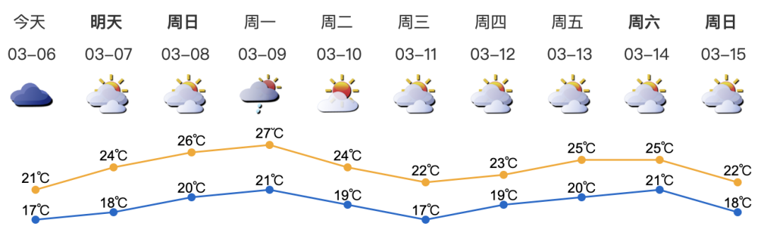 預計7-9日可見陽光,早晚有輕霧;